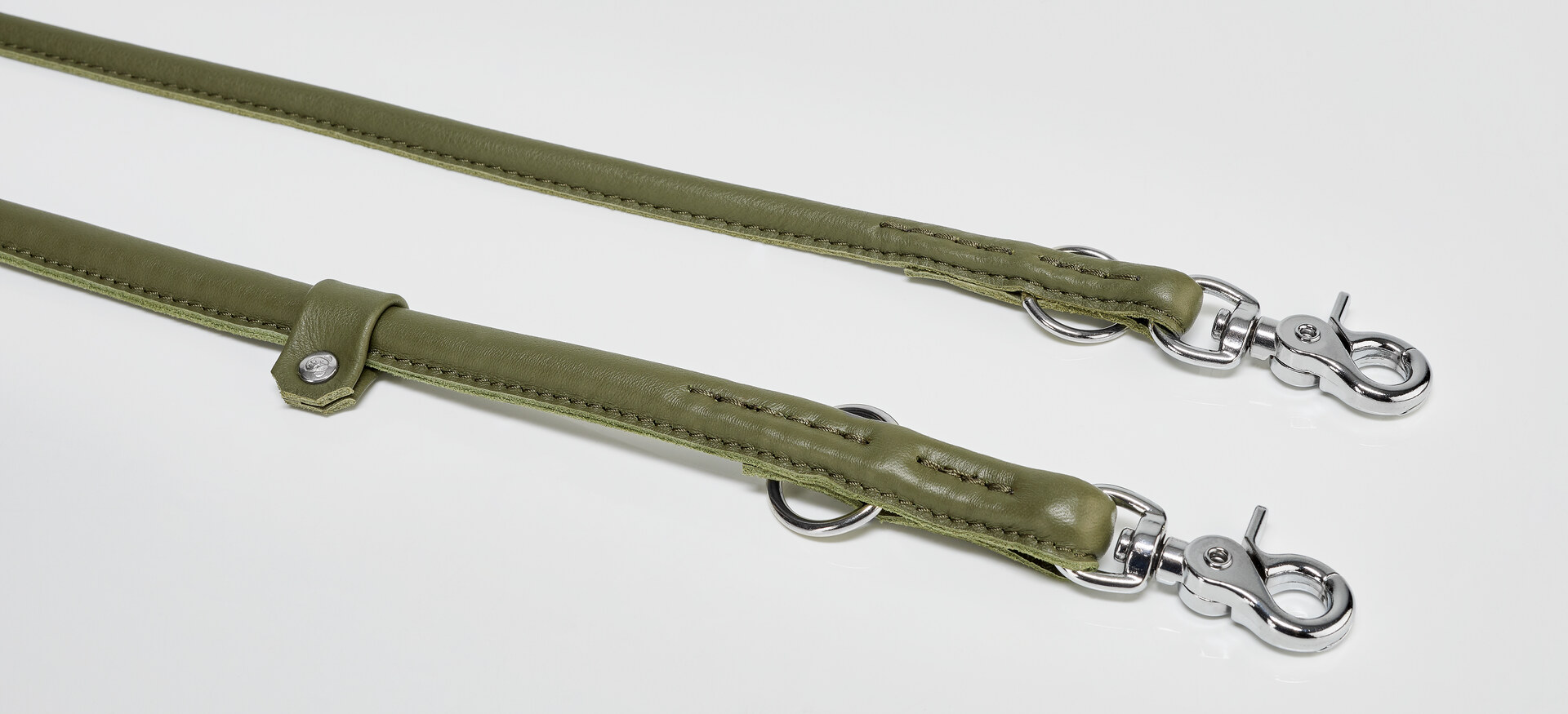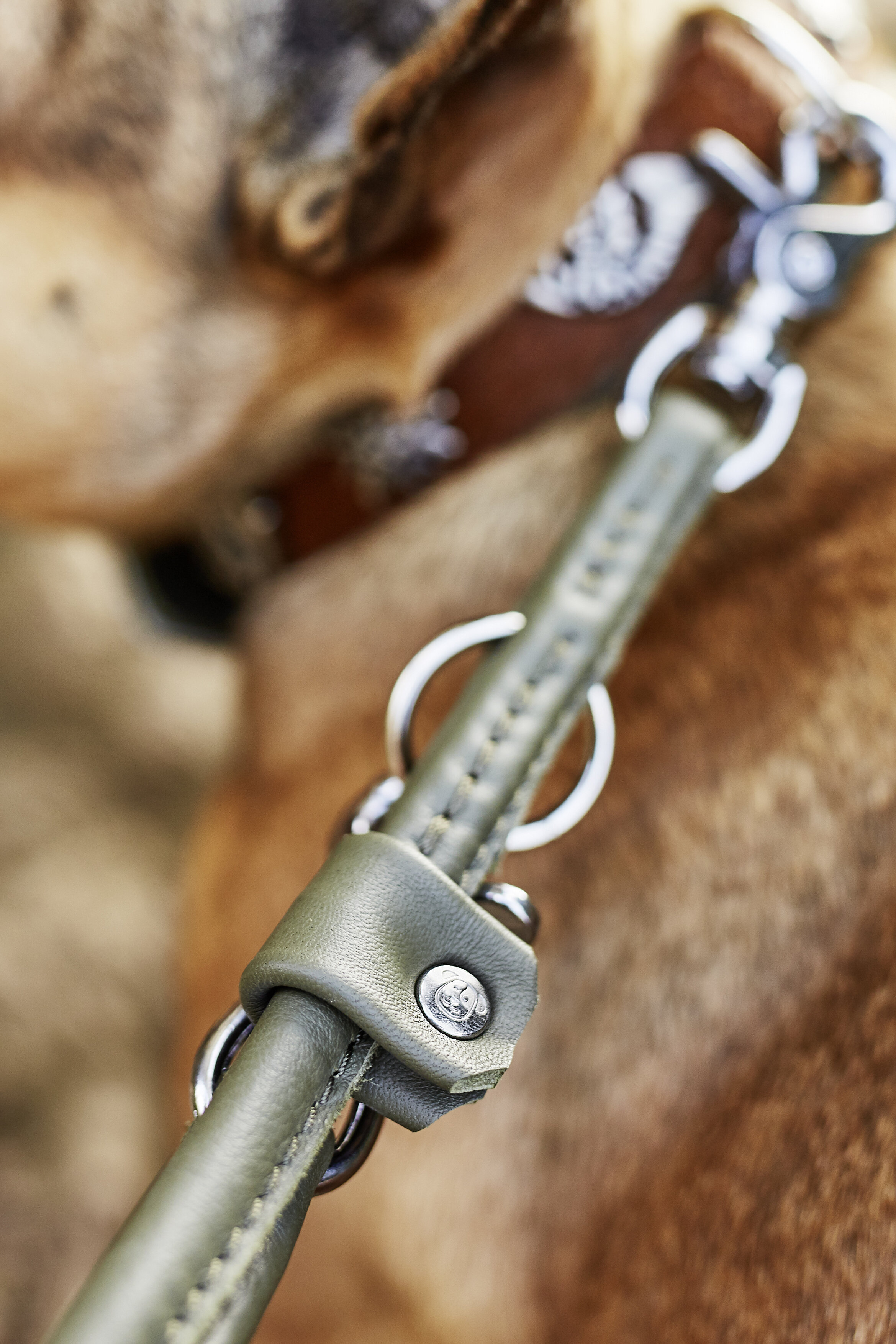 Die AMICI Rundleine in elegantem Dunkelgrün ist der perfekte Begleiter für modebewusste Hundebesitzer. Gefertigt aus besonders weichem Nappaleder bietet sie höchsten Tragekomfort und zeichnet sich durch ihre geschmeidige, rund genähte Verarbeitung aus. Dank des verstärkten Nylonkerns ist die Leine äußerst robust und langlebig, während hochwertige, verchromte Verschlüsse und ein massiver Karabiner für maximale Sicherheit sorgen.