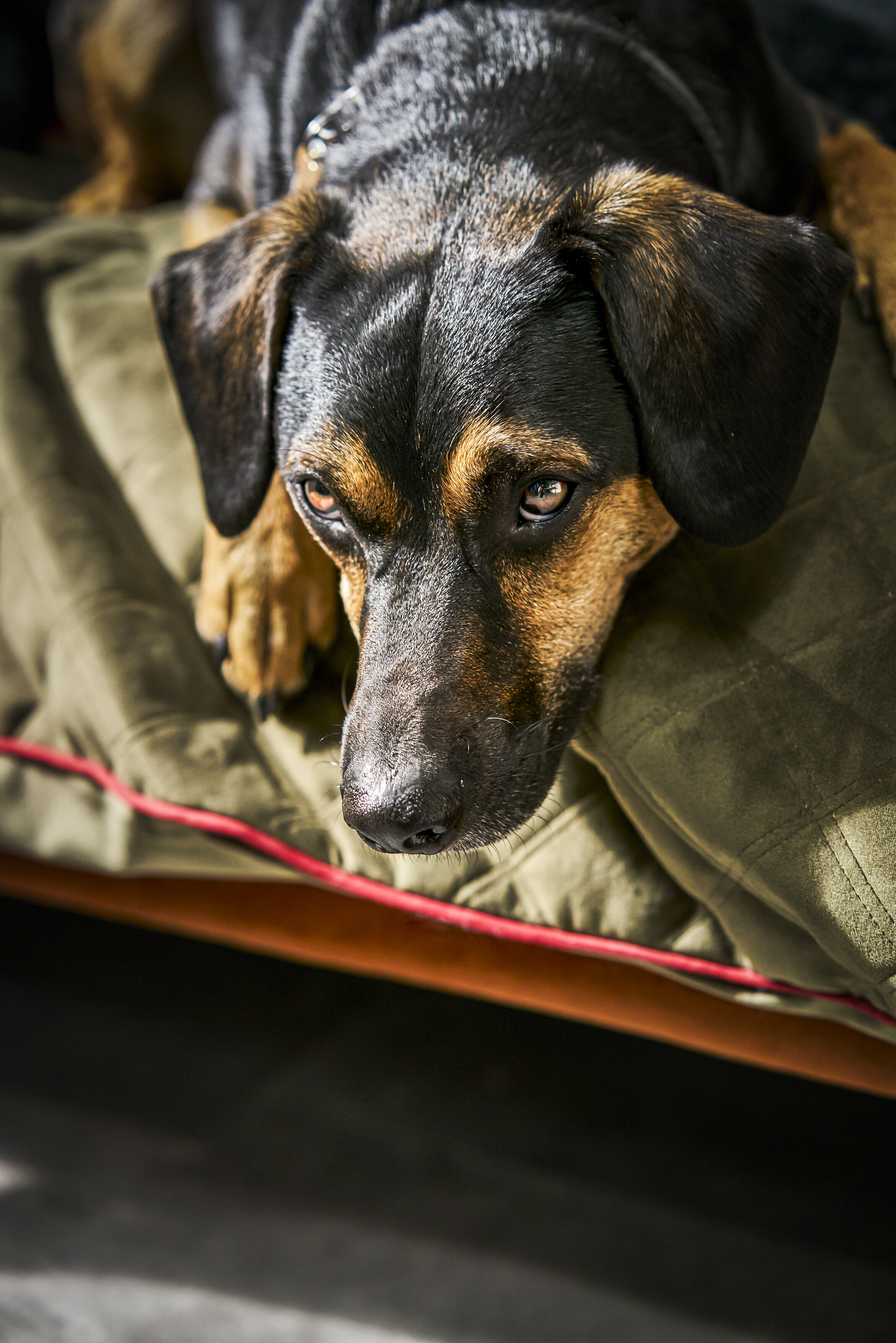 Die Decke OXFORD in der Farbe Olive bietet Ihrem Hund höchsten Komfort und ist ideal für Zuhause, unterwegs oder als stilvolles Plaid auf Sofa und Auto. Die samtweiche Steppdecke überzeugt mit einer eleganten Samtoptik und einem schicken Zierkeder, der die Double-Face-Decke hochwertig einfässt. Die Oberseite ist weich wattiert, während die Unterseite in klassischer Uni-Optik gehalten ist und so vielseitig einsetzbar bleibt.