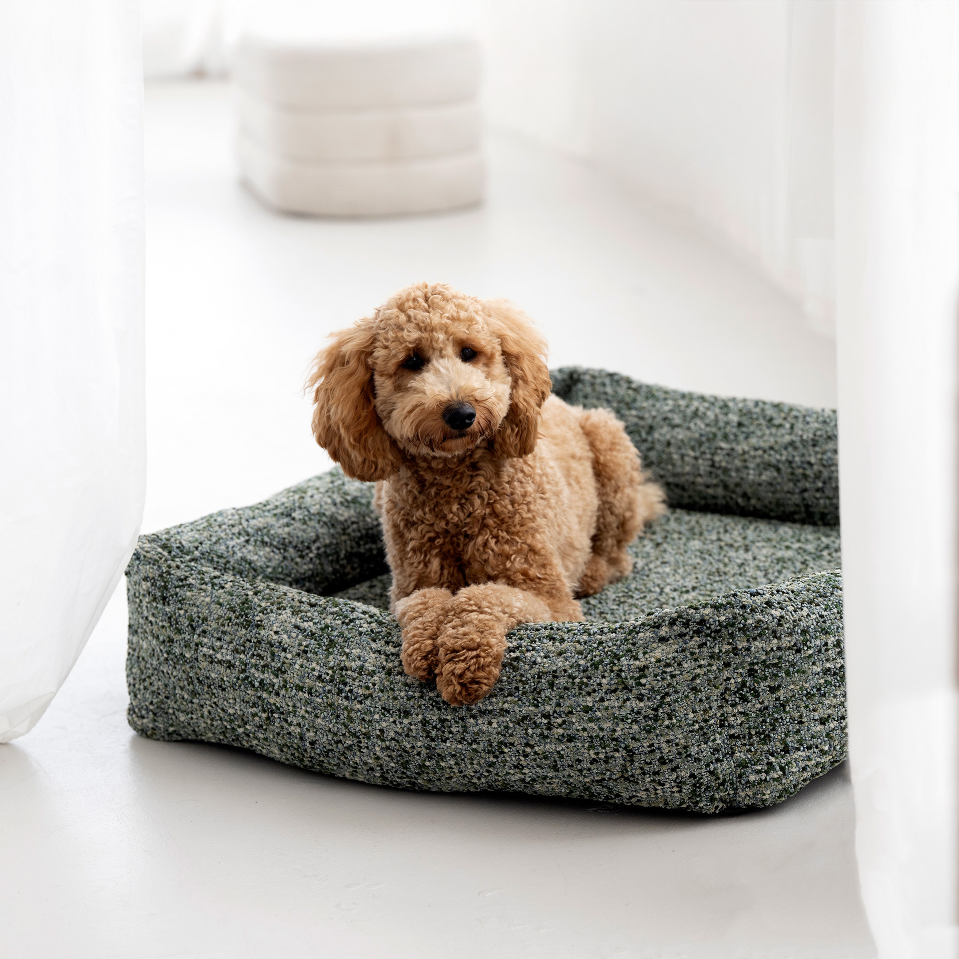 Das orthopädische Hundebett SIENA in der Farbe Elba verbindet stilvolle Eleganz mit durchdachtem Komfort. Ausgestattet mit der innovativen LABONI OrthoMattress passt sich die Matratze optimal dem Körper Ihres Hundes an, entlastet Druckpunkte und unterstützt eine ergonomische Schlafposition. Der hochwertige Bouclé-Bezug besticht durch seine strapazierfähige Melange-Struktur, die kleinere Verschmutzungen kaschiert und somit ideal für den täglichen Gebrauch ist.